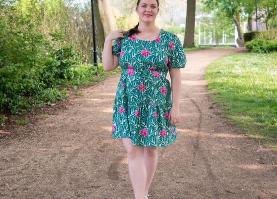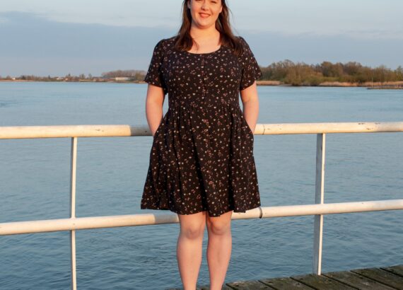 April Dress March 25, 2021 Wardrobe Pattern: Forget Me Not April A-line Dress*Size Range: 28-52 (32.5-56.5″ hip)Size: 44 Full BustFabric & Notions: